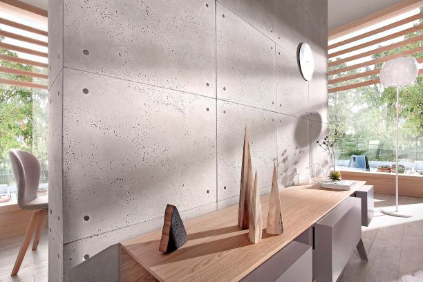 na steny, schody a parapety. Architektonický betón, ktorý umožňuje vytvoriť interiér a fasádu v modernom priemyselnom štýle.